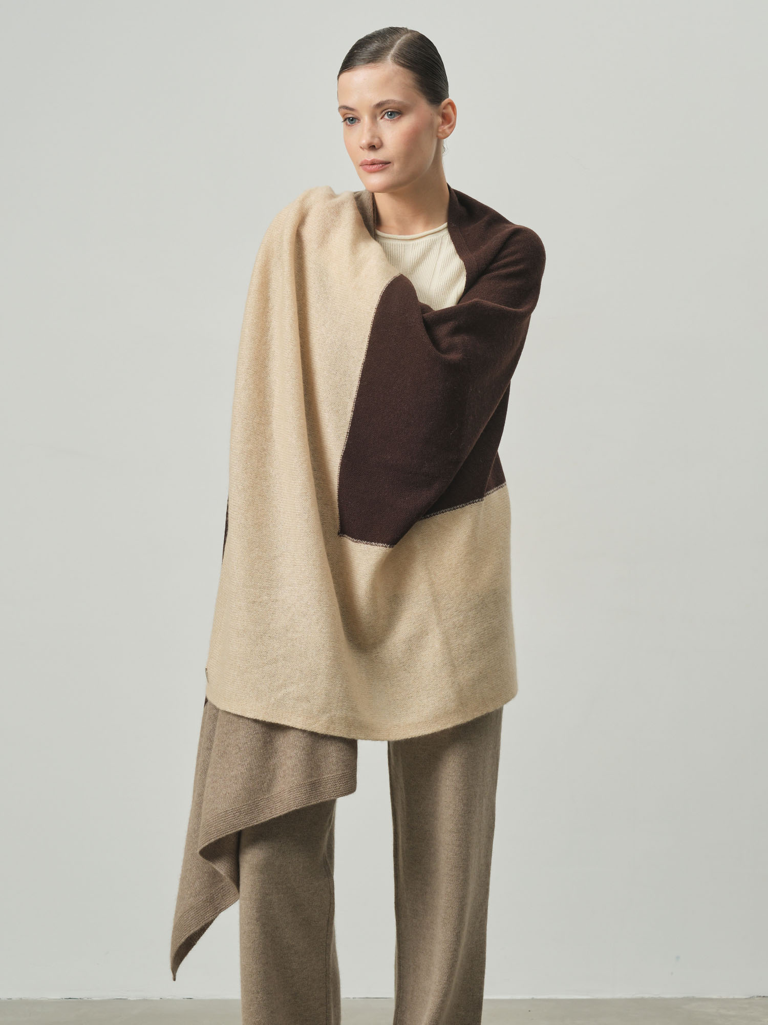 100% кашемир. Натуральный кашемир отличается исключительной мягкостью, лёгкостью и превосходными теплоизоляционными свойствами. Материал приятен к коже и обеспечивает комфорт в прохладную погоду.