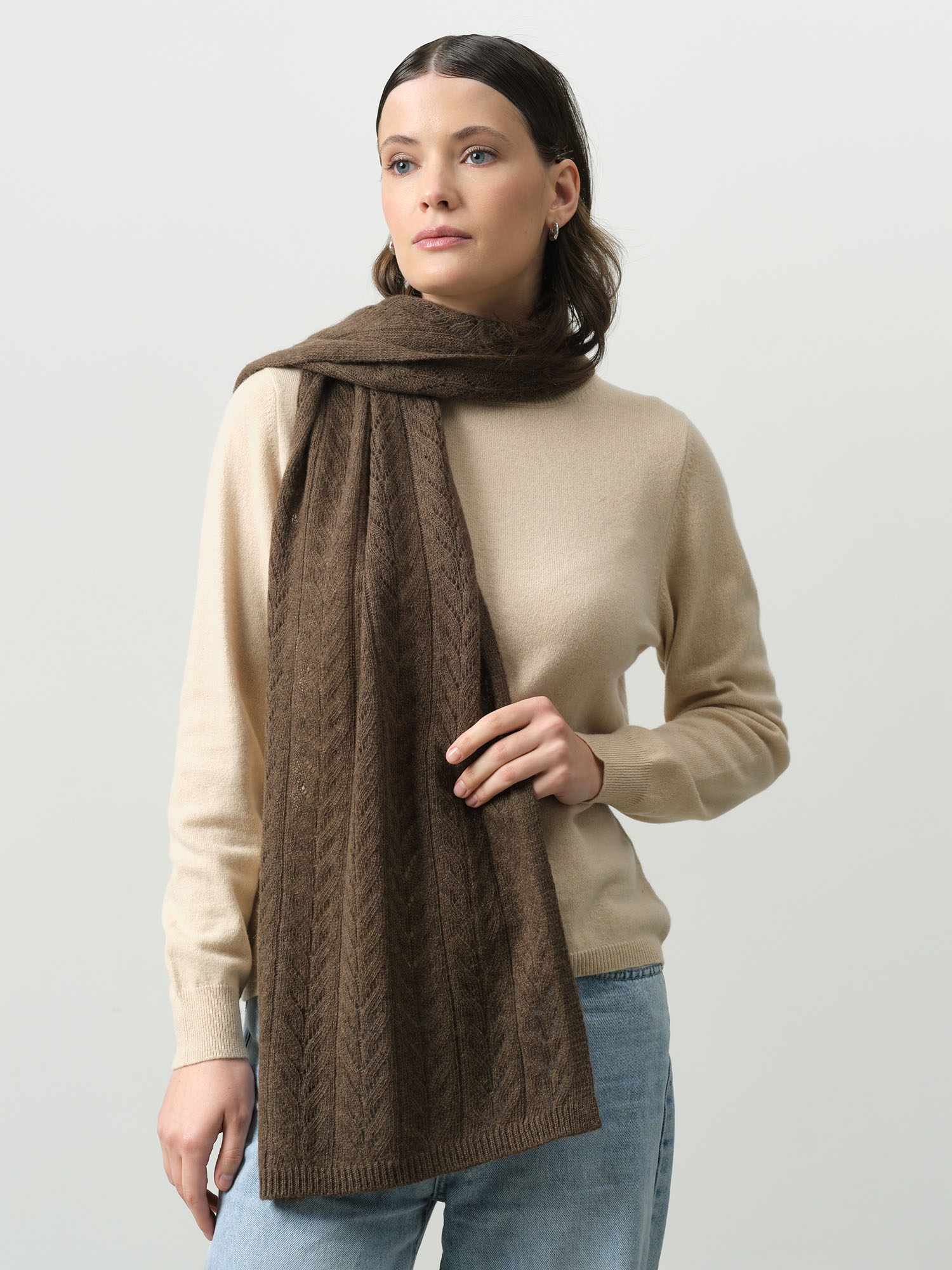 Шарф из пуха яка 15003b в коричневом оттенке — тёплый и элегантный аксессуар, который сочетает природную мягкость натурального волокна и лаконичный современный дизайн. Модель придаёт образу уют и благородную текстуру, гармонично дополняя повседневные и классические комплекты.