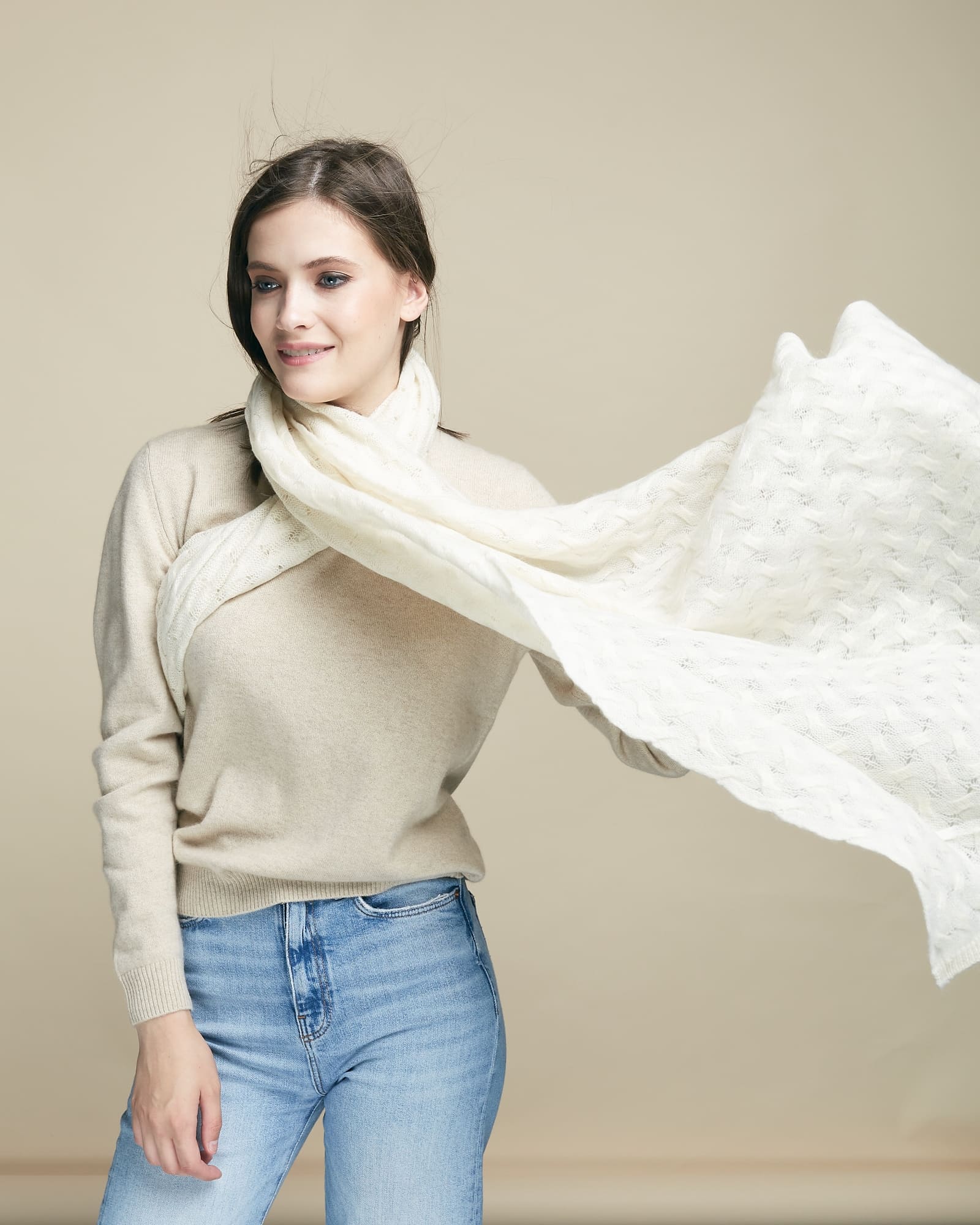 Кремовый — светлый благородный оттенок, который подчёркивает мягкость кашемира. Универсальный цвет легко сочетается с бежевыми, серыми, карамельными и пастельными оттенками гардероба.