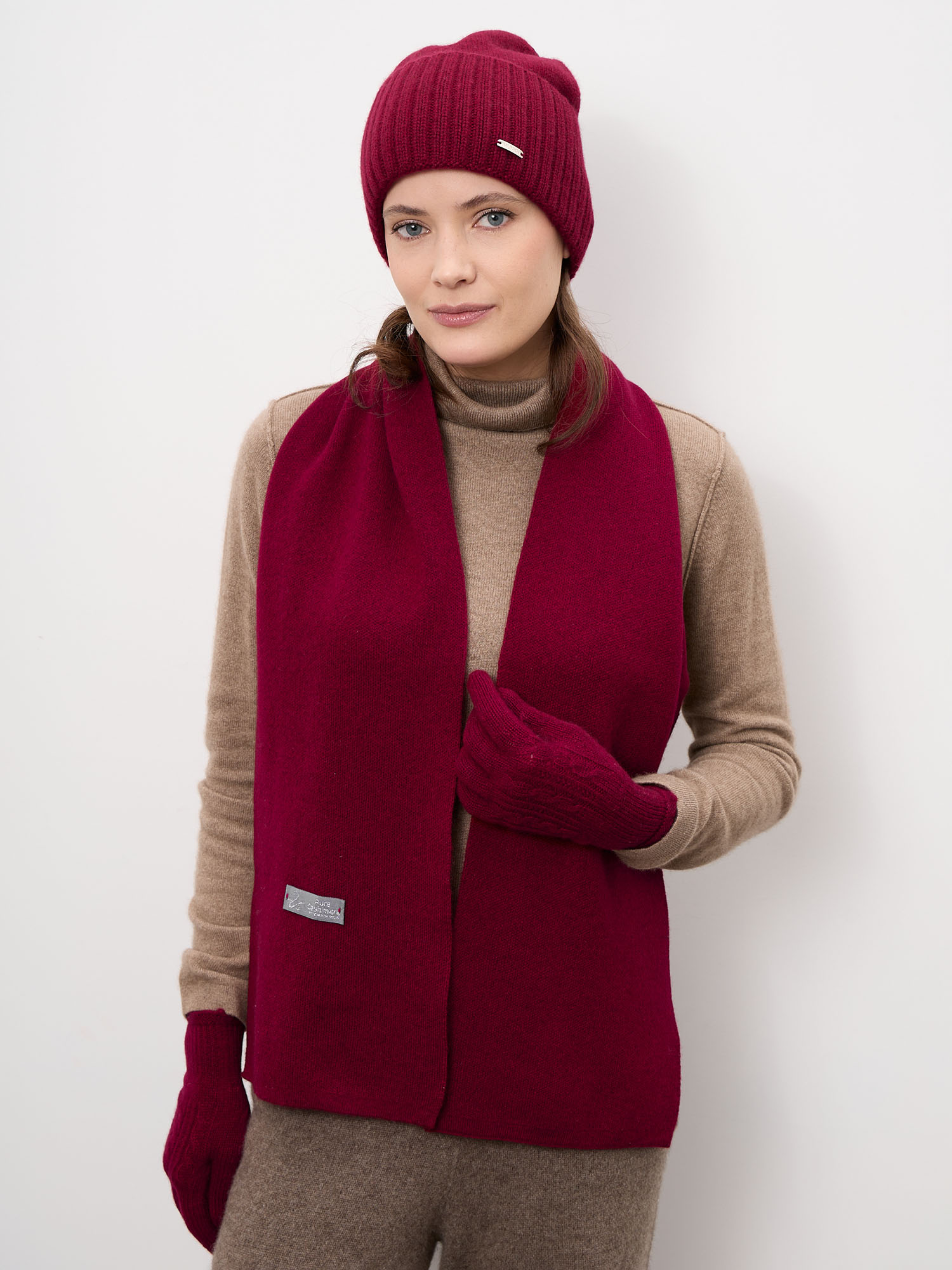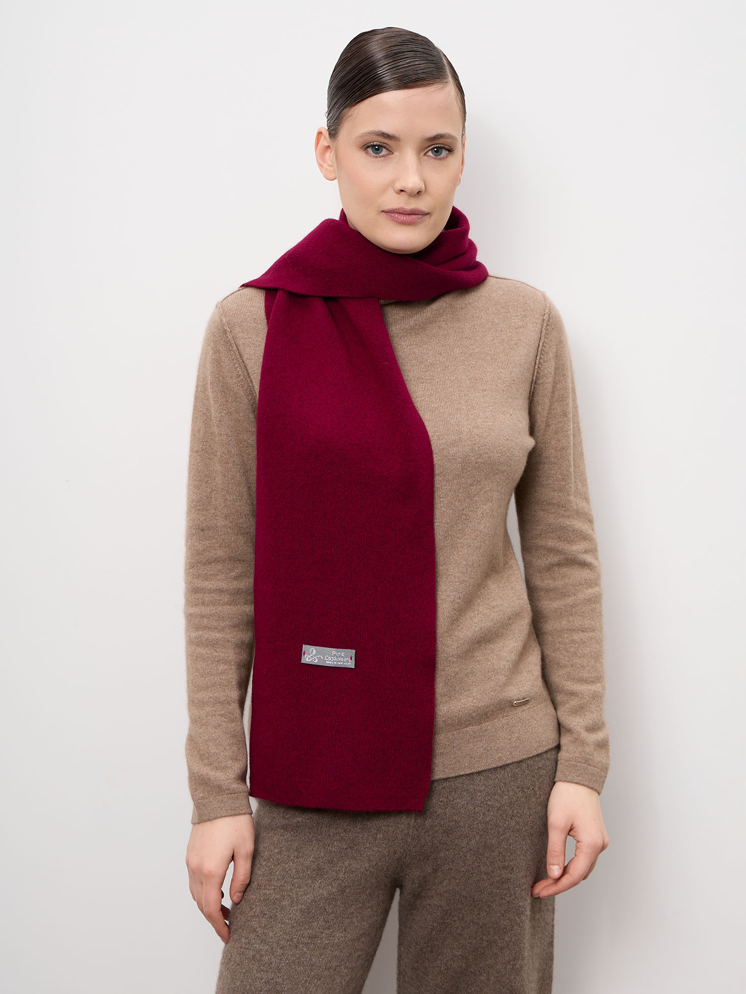 Кашемировый шарф в насыщенном бордовом оттенке — выразительный аксессуар, который добавляет образу элегантность и глубину. Мягкое и лёгкое полотно деликатно драпируется, создавая аккуратный силуэт и ощущение уюта. Благородный цвет и минималистичный дизайн делают шарф универсальным дополнением как повседневных, так и более изысканных образов.