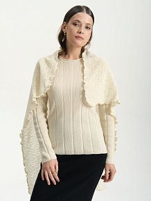 Модель выполнена в форме косынки с аккуратной фактурной вязкой и плавной линией края. Универсальная форма позволяет красиво драпировать платок и носить его различными способами.