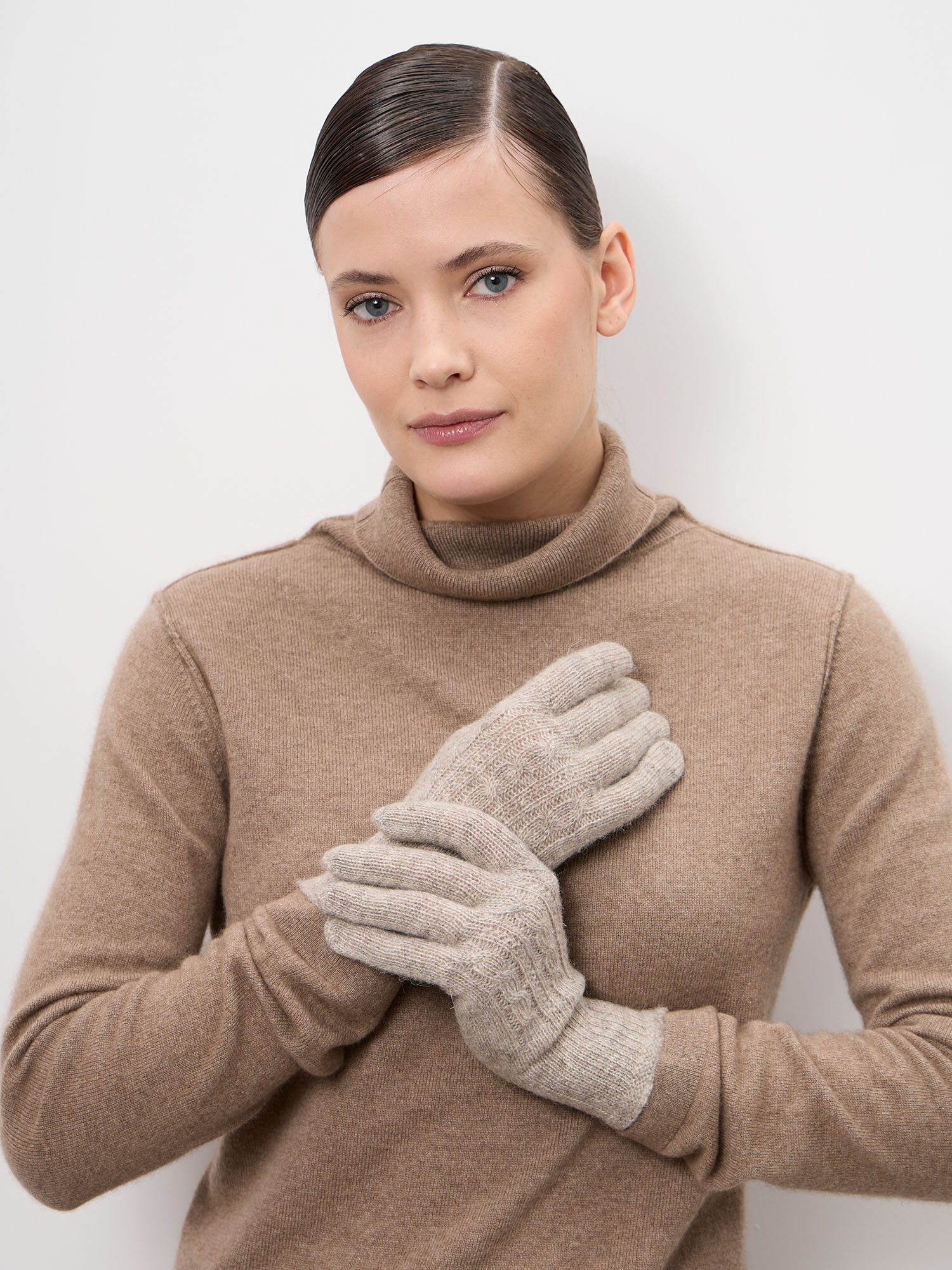 Модель выполнена с акцентом на классический узор «косы», который создаёт объёмную текстуру и придаёт перчаткам изысканный внешний вид. Такой дизайн делает аксессуар универсальным и стильным.