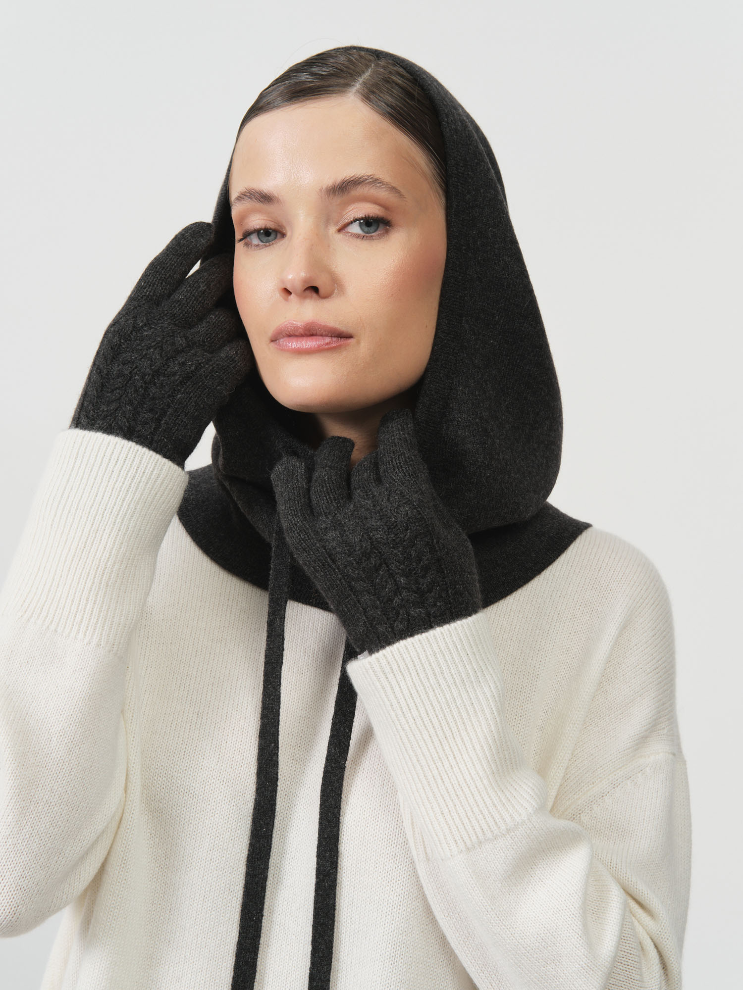 Кашемировые перчатки в оттенке графит — это сочетание сдержанной элегантности и функционального комфорта. Глубокий цвет и аккуратная вязка делают модель универсальным аксессуаром, который гармонично дополняет как повседневные, так и более строгие образы.