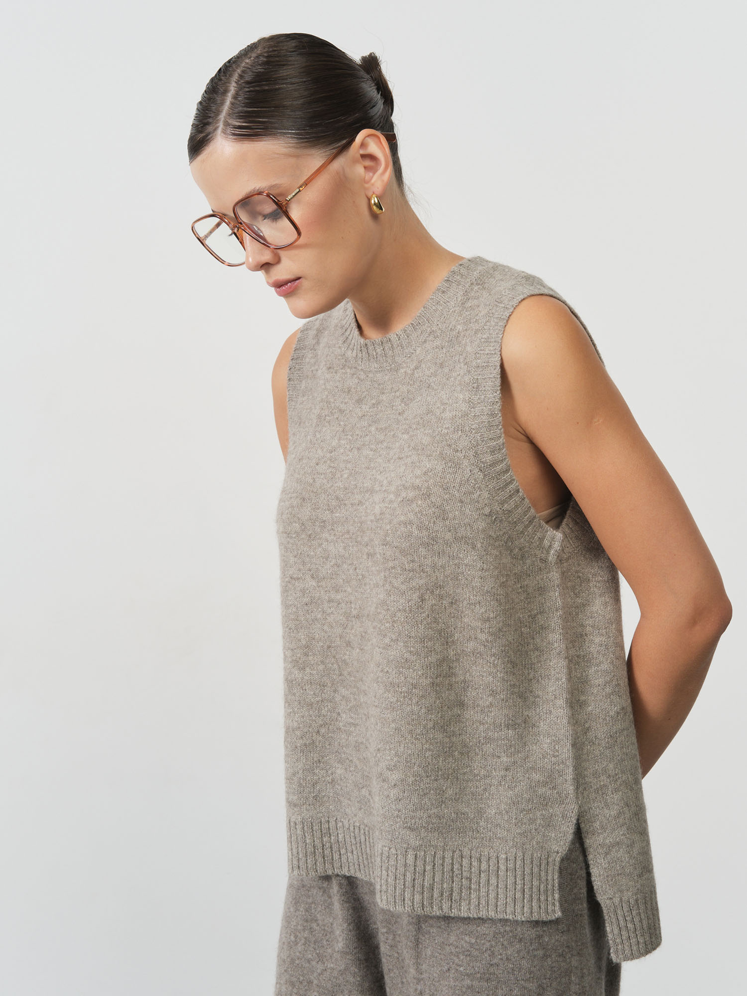 Женский джемпер без рукавов из пуха яка — стильная и современная модель, которая сочетает минималистичный дизайн и комфорт натурального материала. Лаконичный силуэт делает изделие универсальной частью базового гардероба, подходящей для многослойных образов и повседневной носки.