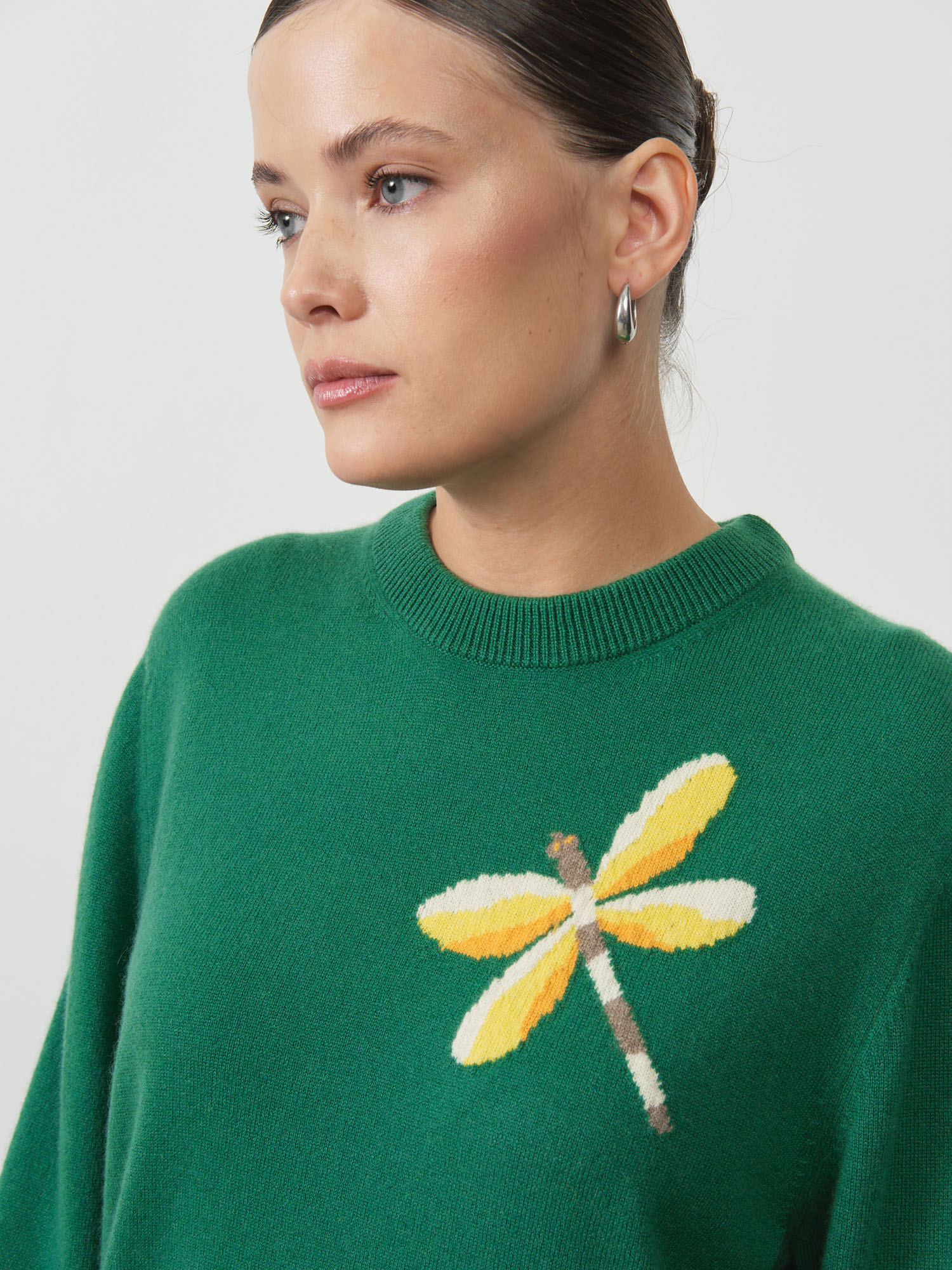 Насыщенный зелёный оттенок, подчёркивающий свежесть и элегантность образа.