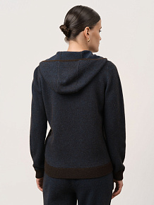 Модель выполнена в спортивно-повседневном стиле с капюшоном и застёжкой на молнии. Лаконичный крой и аккуратная фактурная вязка делают джемпер универсальным элементом гардероба.