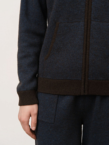 Капюшон, центральная застёжка на молнии, удобные боковые карманы и контрастная отделка манжет и нижнего края. Плотная вязка помогает изделию сохранять форму и аккуратный внешний вид.