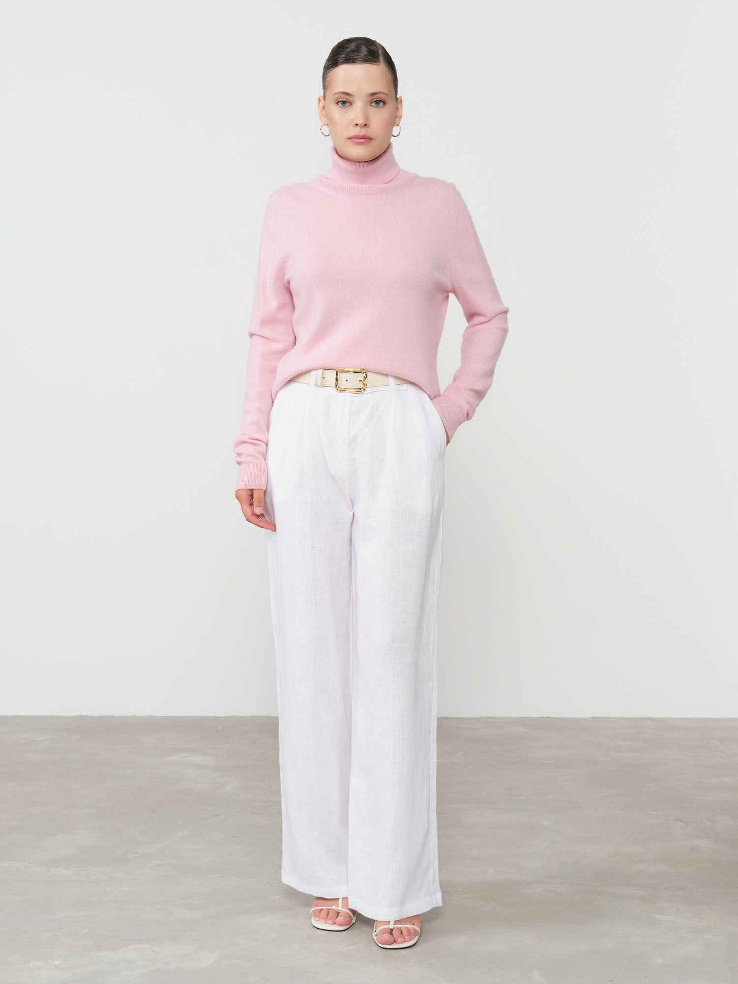 Нежный розовый цвет придает водолазке свежесть и утонченность, позволяя легко сочетать её с различными элементами гардероба. Эта водолазка идеально подходит как для повседневной носки, так и для создания романтических образов, добавляя нотку нежности и роскоши.