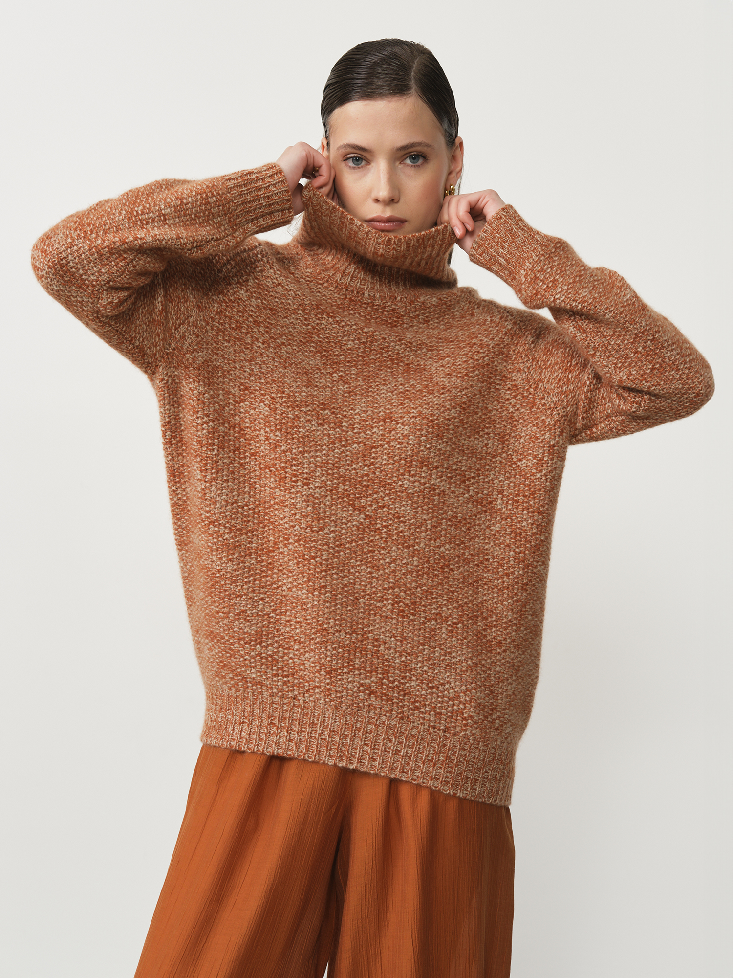 Кашемировый свитер просто очаровательный. Легкий, теплый, уютный. Цвет прям для осени, радует и повышает настроение. Спасибо за красоту и качество!!! |