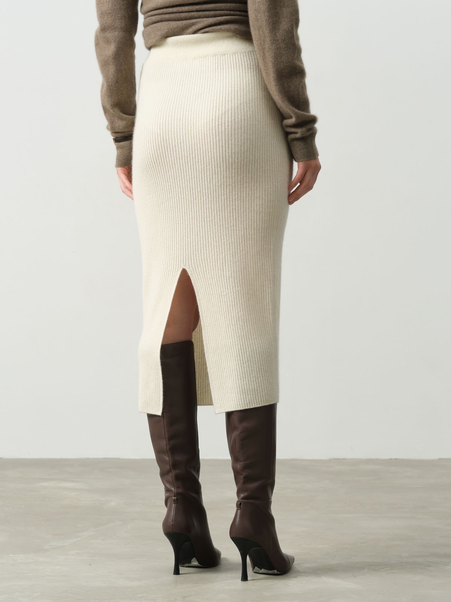 Эластичный пояс для комфортной посадки, аккуратная трикотажная вязка, разрез сзади для свободы движений. Качественная обработка краёв подчёркивает премиальность изделия.